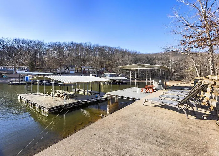 The Sunrise Beach accommodation is equipped with a fully-fitted kitchen with a fridge, an oven, and a stovetop. The closest airport is Waynesville-St. Robert Regional, which is 125 km from this 4-bathroom villa.